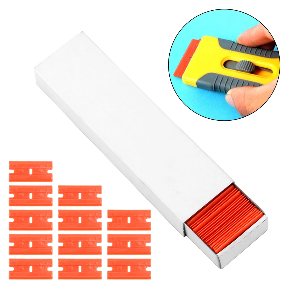 100Pcs Car Wrap Sticker Squeegee Window Glass Clean Scraper Double Edged Plastic Razor Blade Lable Clean Razor Glue Remover