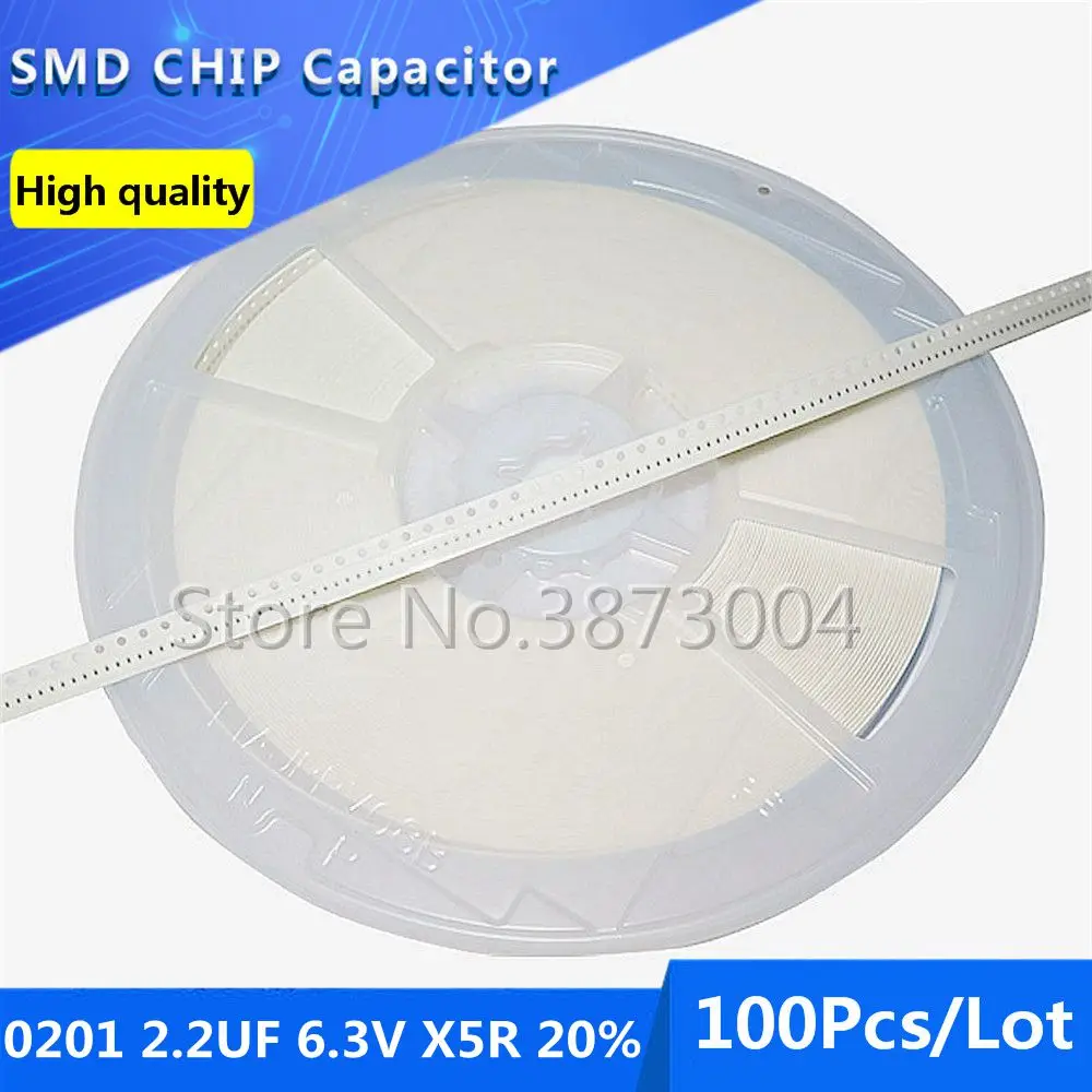 100pcs 0201 2.2UF 6.3V X5R 20% Thick Film Chip Multilayer Ceramic Capacitor