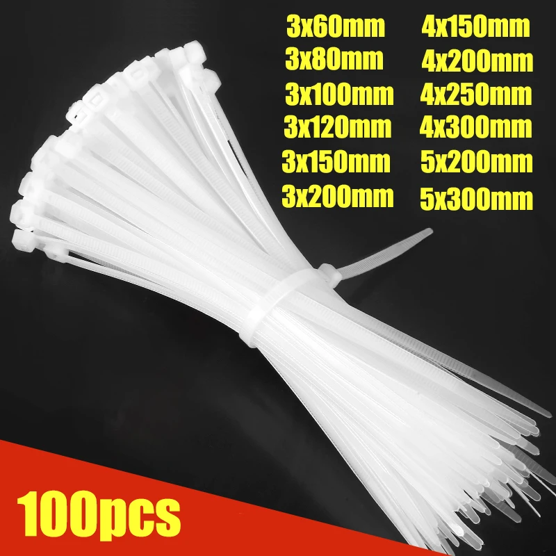 100pcs/bag cable tie Self-locking plastic nylon tie White Organiser Fasten Cable Wire Cable Zip Ties