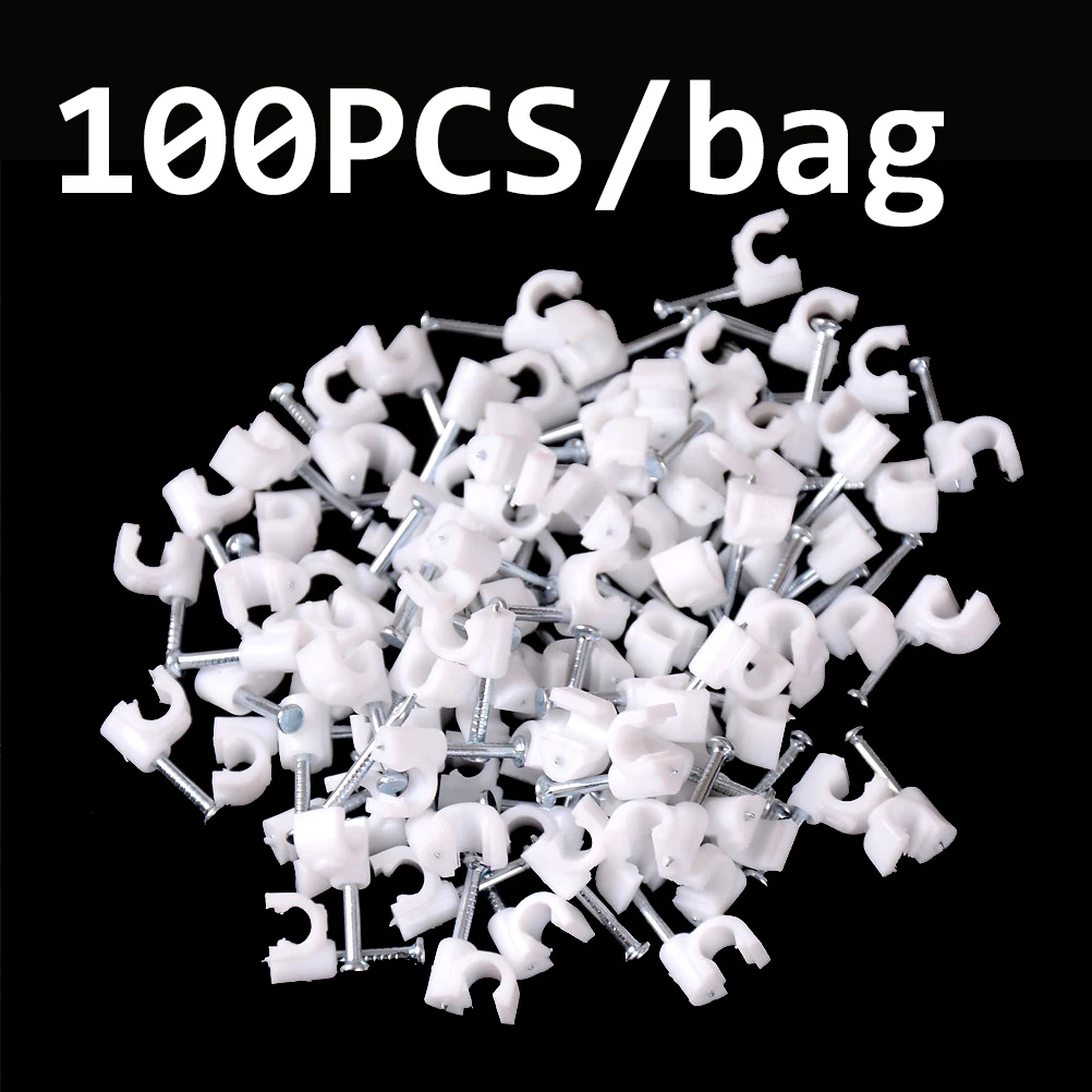 100PCS/bag 6MM Circle Path Circle Cable Clips Cable Nail Wire Clips Cable Clips Round White