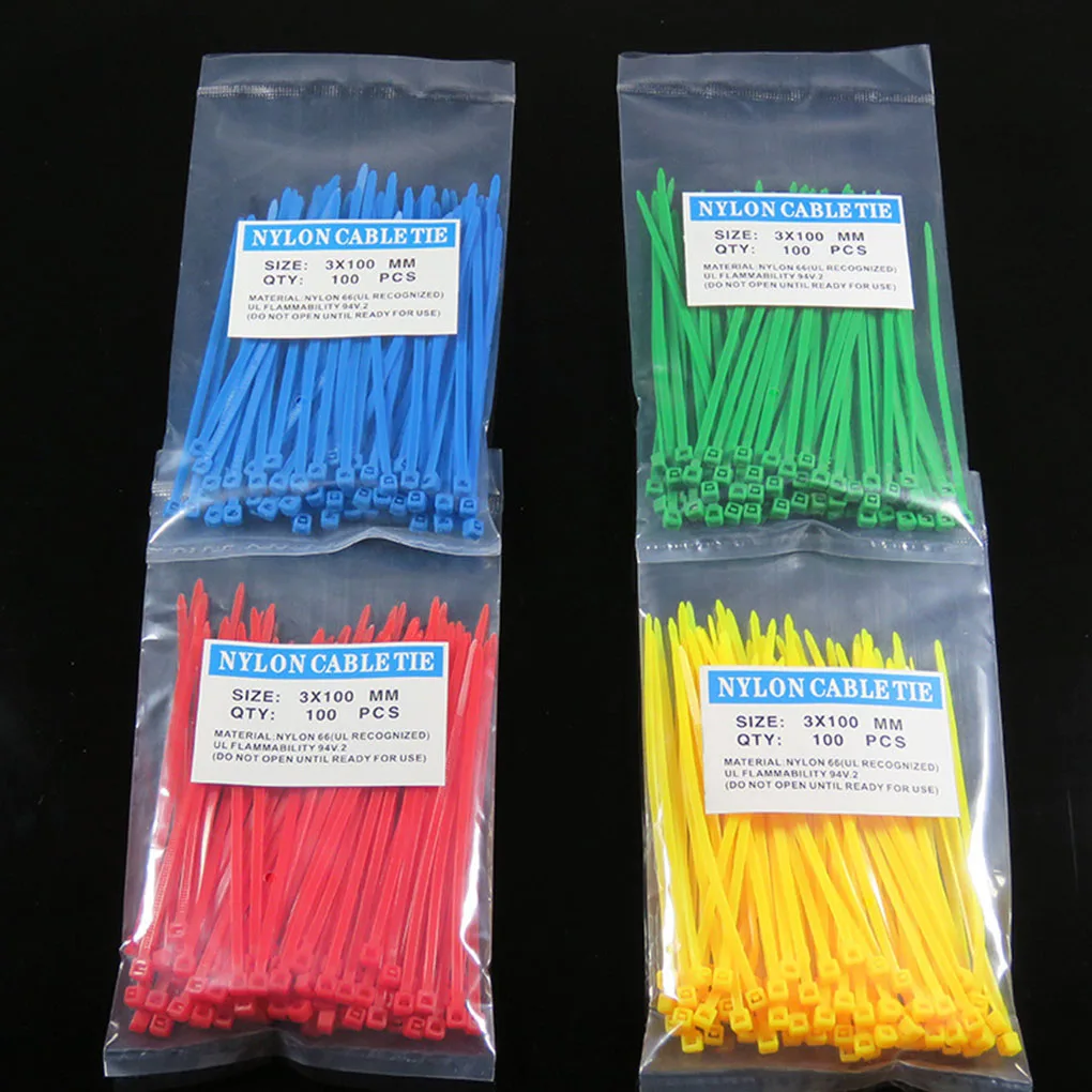 100pcs/bag 6 Color 3mmx100mm Self-Locking Nylon Wire Cable Zip Ties Cable Ties White Black Organiser Fasten Cable