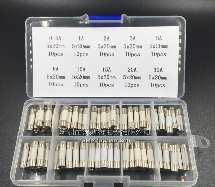 100Pcs/lot 5x20mm Electrical Assorted Fuse Amp Fast-blow Ceramic Fuse Mix Set With Box 0.5A 1A 2A 3A 5A 8A 10A 15A 20A 30A