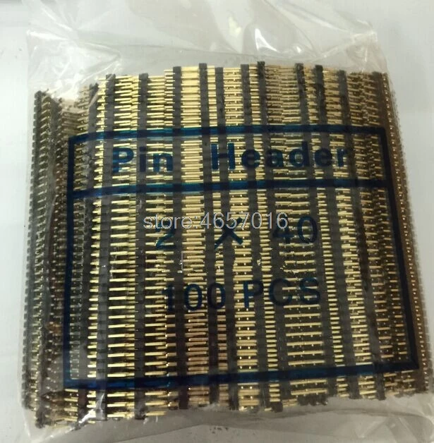 100pcs/lot 2.54mm Double Row Male 2X40 Pin Header Strip Gold-plated ROHS Good quality