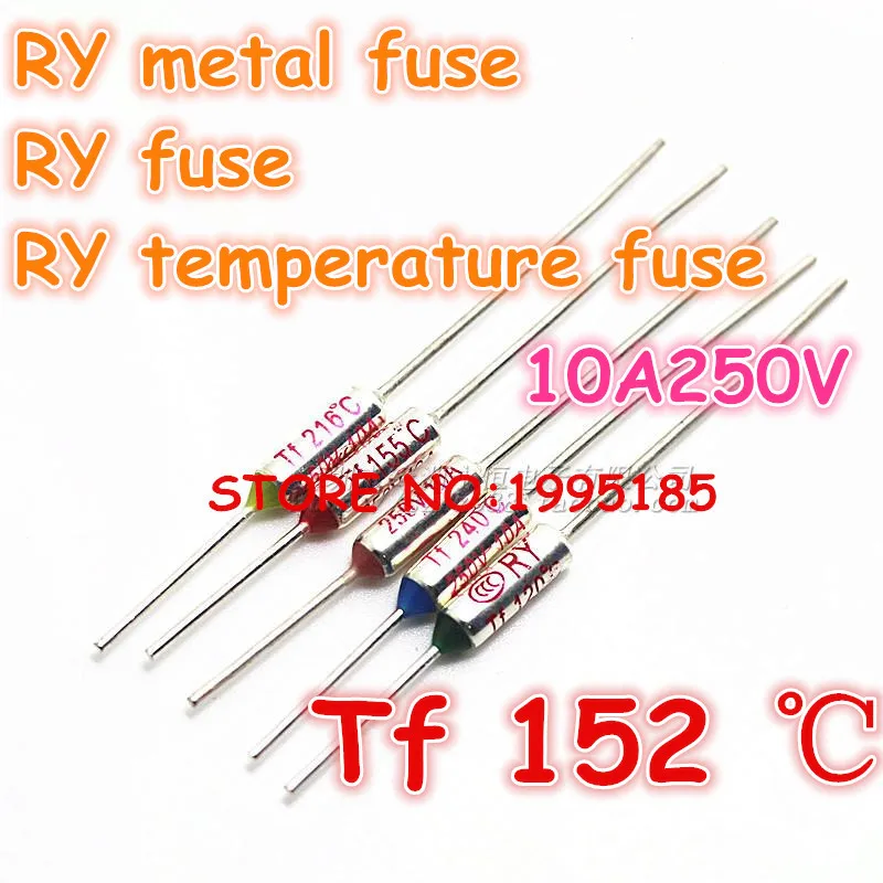 RY 100pcs/lot New Micro thermal fuse 10A250V 152 Degrees 152 C Mini temp fuse metal shell Thermal Cutoff