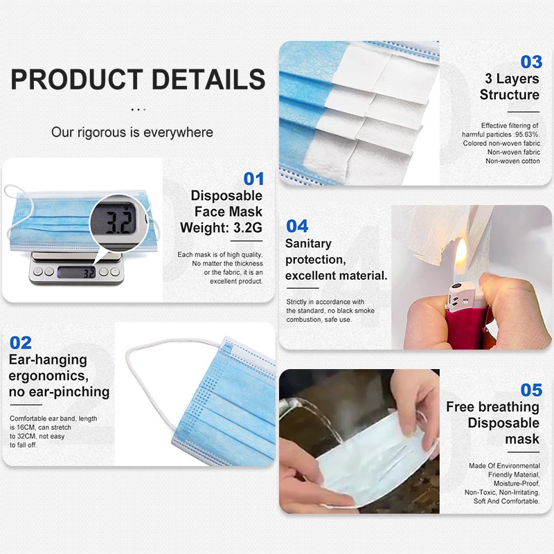 100pcs/lot Protective Medical Surgical Mask Non-woven Dust Mask Thickened Disposable Surgical Mask 3-layer Face Mask