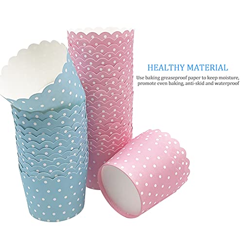 100Pezzi Pirottini Carta per Muffin Cupcake Torte Dolce Forno Decorazione Baking Cup Matrimoni Compleanni Feste - Punto Rosa & Punto Blu 1,97 x 2,3 x 1,85 Pollici