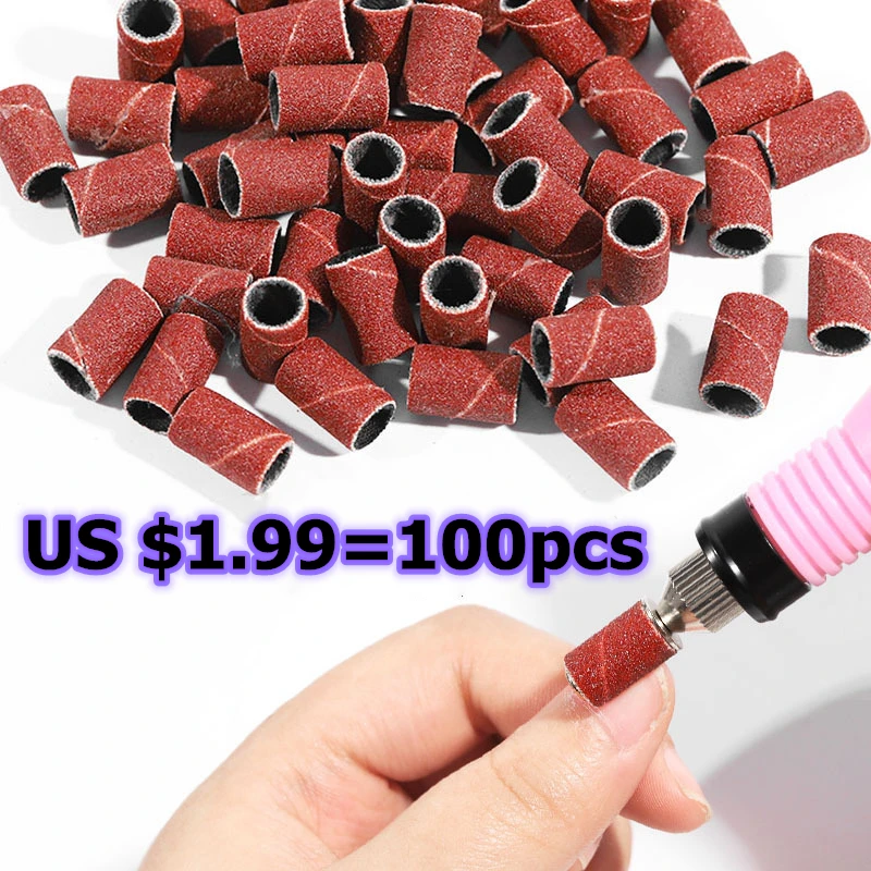 100Ps #80 #150 #180 #240 Sanding Bands Zebra Sand Ring Bit Manicure Pedicure Nail Electric Drill Machine Grinding Remover Cutter