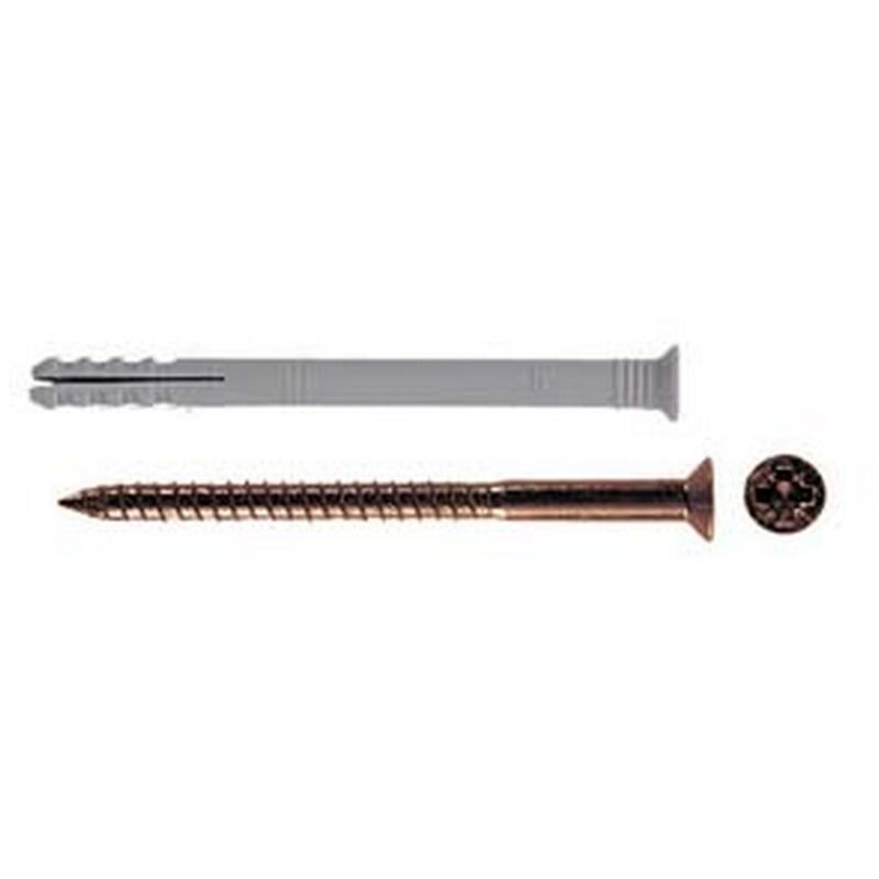 Tassello in nylon con bordo svasato - fornito con vite chiodo premontata a testa svasata piana bronzata per battiscopa ? mm.2,5x40