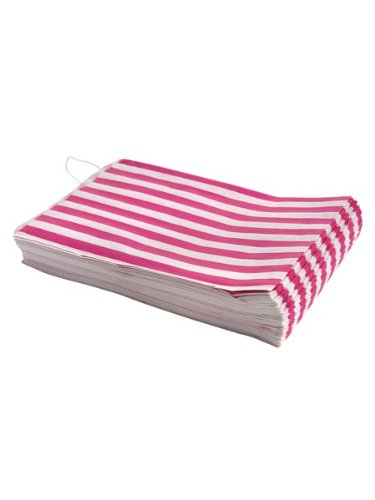 X 100/Striped Candy Stripe Paper Party Sweet Bags-5 "" x 7 " rosa