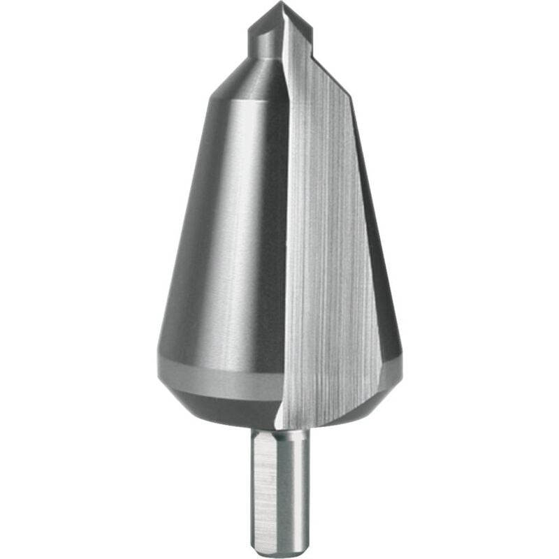 Dettagli tecnici Contenuto 1 pz. Diametro albero 10 mm Lunghezza totale 89 mm Materiale punte HSS Tipo prodotto Punta conica allargaforo Direzione di taglio: Taglio a destra Albero: Gambo a tre superfici Uscita forma C: A croce Angolo acuto 118° Angolo conico: Da 20 a 30° Punta da trapano per lamiera HSS, rettificata con intaglio a croce Dimensioni. 4. Intervallo di foratura 24,0 - 40,0 mm. Con questo robusto utensile è possibile centrare le lamiere in un'unica operazione, forare a iniezione e forare in modo continuo. La scanalatura di serraggio con affilatura profonda offre una scorrevolezza assoluta e un'elevata capacità di taglio. Il cono facilita il retramento in caso di lamiere forate. HSS: Acciaio rapido ad alte prestazioni per fori in materiali ben lavorabili con una resistenza fino a 900 N/mm². Testo tradotto automaticamente Incluso nella consegna null Requisiti di sistema null