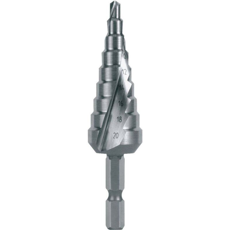 Dettagli tecnici Diametro albero 6.35 mm Diametro foratura (intervallo) 4 - 20 mm Lunghezza totale 81 mm Materiale punte HSS Ulteriori dati tecnici Direzione di taglio a destra Albero per inserti Punta affilata forma C A croce Direzione di taglio a destra Albero per inserti Punta affilata forma C: A croce Punta per trapano a gradini HSS, a spirale con intaglio a croce Dimensione n. 1. Area di foratura 4,0 - 20,0 mm. NEXT GENERATION - con questo robusto utensile è possibile centrare le lamiere, forare, forare e sbavare in un'unica operazione. La scanalatura di serraggio profonda e a spirale offre un'assoluta scorrevolezza e un'elevata capacità di taglio. In particolare, i trucioli che non si rompano vengono trasportati in modo pulito come per un trapano a spirale. Ciò riduce la formazione di tagli di carrozzeria e saldature a freddo sui taglienti. Il cono facilita il retramento in caso di lamiere forate. HSS: Acciaio rapido ad alte prestazioni per fori in materiali ben lavorabili con