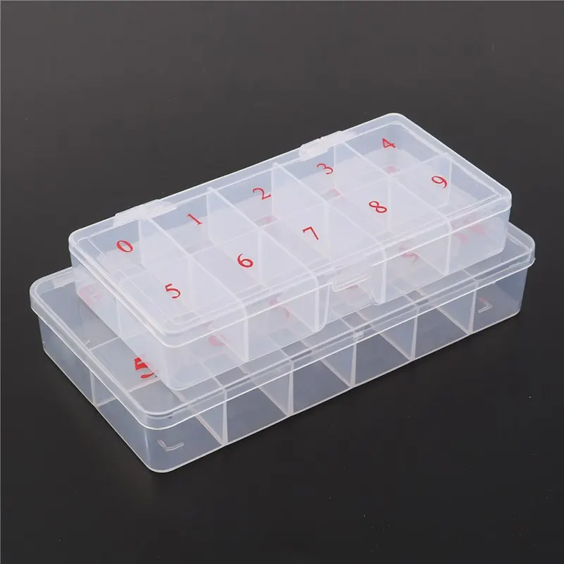 10/11 Fake Nail Art Tips Case Acrylic Plastic Cells False Box Storage Case Natural Translucent Nail Tool