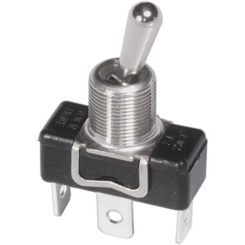 Dettagli tecnici Caratteristiche pulsante / interruttore Leva in metallo Collegamento (Componenti) Faston 6,3 mm, Anello a saldare Colore alloggiamento/pulsante Metallo Contenuto 1 pz. Corrente di commut. max. 3 A Diametro foro di montaggio 12.5 mm Durata (elettrica) 10000 cicli Funzioni (pulsante/interruttore) Permanente / 0 / Permanente Materiale di contatto Argento (Ag) Modello (in generale) Interruttore a leva Numero Poli (num) 1 Resistenza di passaggio (per 1 A/2 V/CDC) 10 mΩ Resistenza isolamento (500 V) 1000 MΩ Tensione di commutazione 250 V/AC Tipo prodotto Interruttore a levetta Incluso nella consegna null Requisiti di sistema null Note Nella descrizione della posizione di commutazione i valori tra parentesi stanno a significare che si tratta di una funzione a posizione momentanea. Illustration similar.