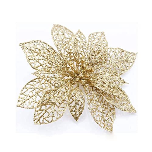 10/20 Pezzi Glitter Argento Fiori di Natale Tessuto Artificiale Cavo Fiori di Simulazione Decorazioni Dell'albero di Natale per Nozze Festa Festival Arredamento Ornamento (20pz oro)