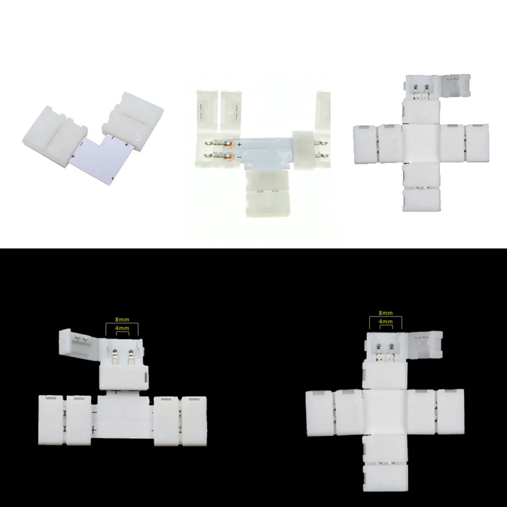 10/20pcs RGB LED Strip 2 Pin/4 Pin 8mm/10mm L-Shaped T-Shaped Solderless LED Connector Adapter For For Connecting