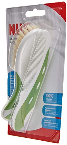 NUK 10256383 - Spazzola per bambini, in setole naturali al 100% con punte arrotondate, colore: Verde