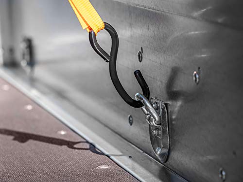 4 cinghie di tensionamento in set con cricchetto e manici rivestiti in gomma, 4 ganci rotondi con rivestimento in plastica