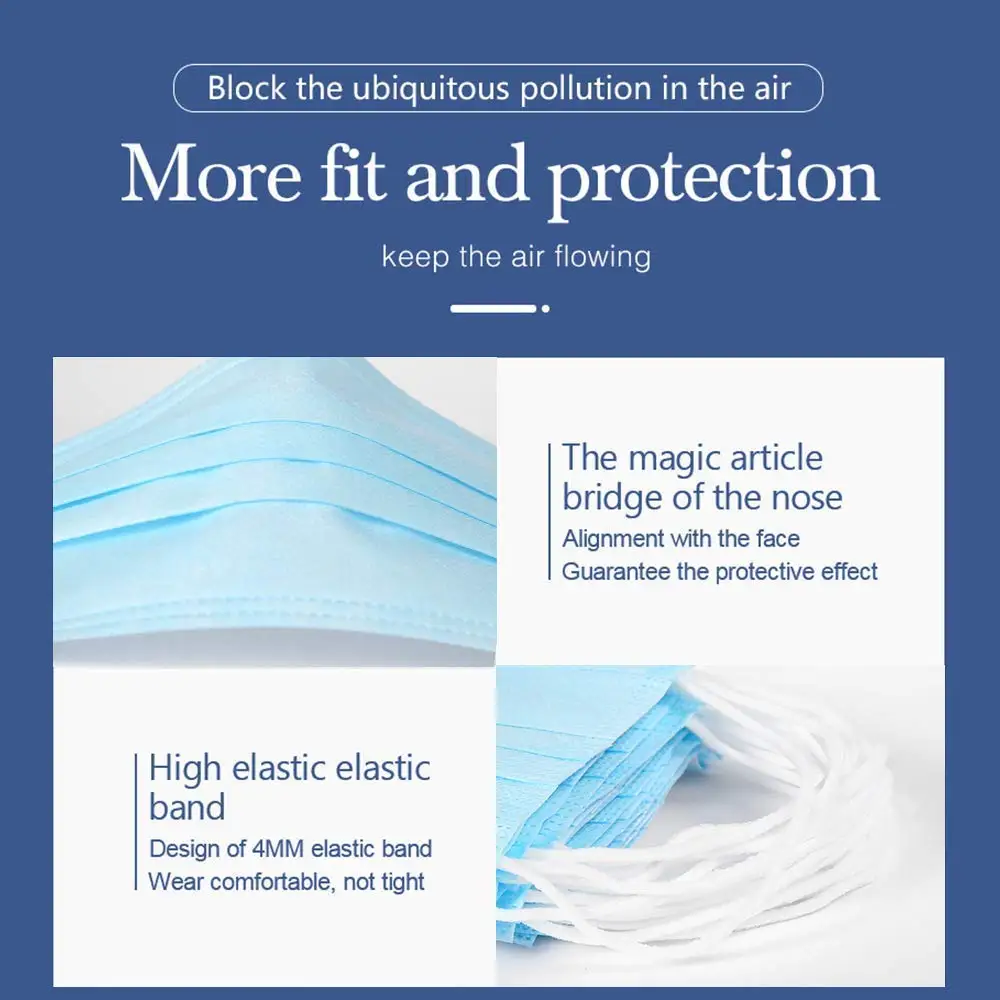 10/30/50/100Pcs Disposable Surgical mask Face Mouth Masks 3-Layer Filter Non Woven Medical Anti-Dust Surgical Earloops Masks