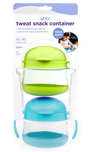 Ubbi 10310 Contenitore Porta Snack per la Merenda Anti Rovesciamento, Pack Doppio, Verde e Azzurro