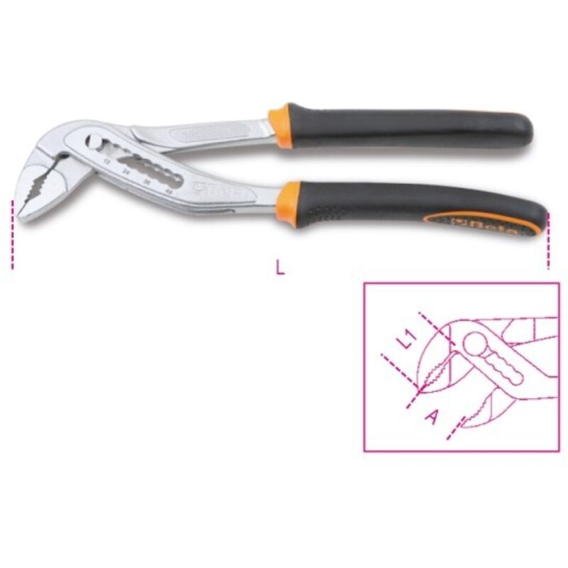 PINZE REGOLABILI CHIUSE 250 Articolo 1048 Beta Utensili Codice 010480015 pinze regolabili cerniera chiusa manici ricoperti con 2 strati di PVC antiscivolo â modello a nove posizioni L mm: 250 A max mm: 48 L1 mm: 39 S mm: 13,5 Peso g: 370