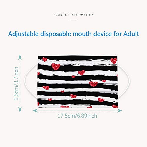 10/50 Pezzi Viso Visiera Tessuto Bocca, Banda Amore Cuore San Valentino Stampa - Protettiva Stoffa Monouso 3 Strati Traspirante Antipolvere Elastico