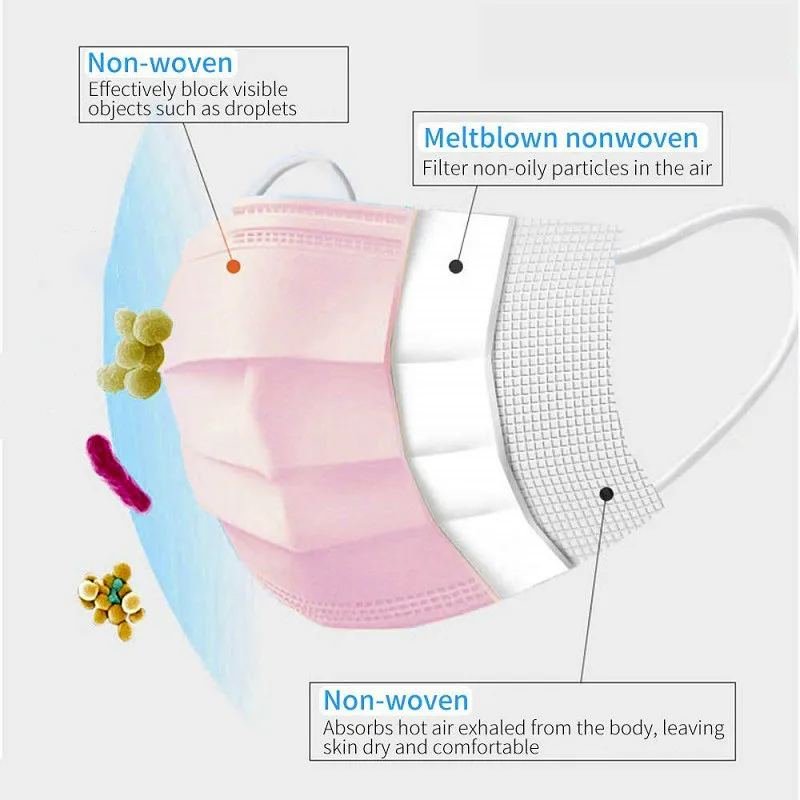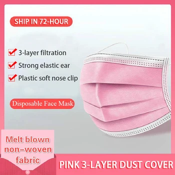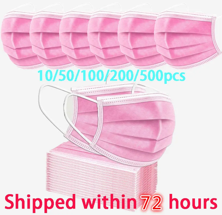 10/50/100/200 Pcs Pink Disposable Non-woven 3-layer Face Mask Breathable Mask With Elastic Earloops Breathable Adult Mouth Mask