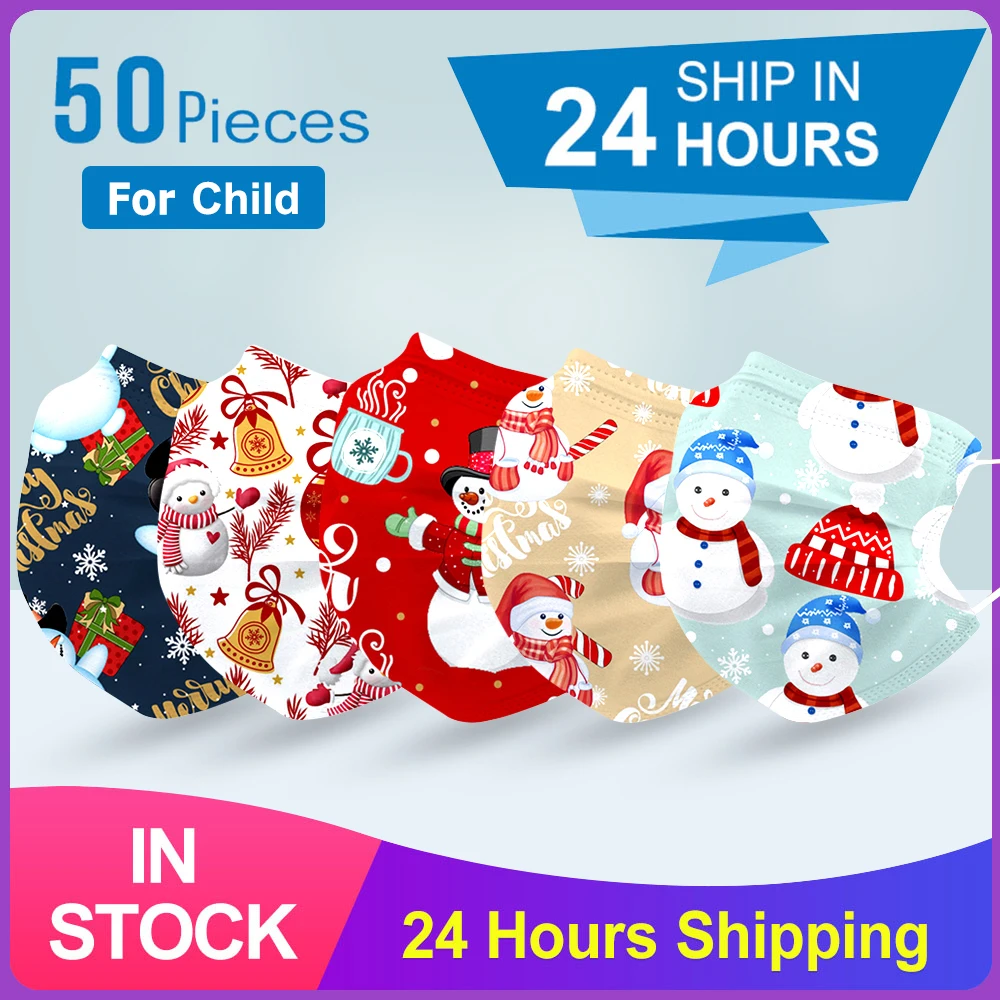 10/50Pcs Medical Disposable Face Mask Fast Delivery 3-Layer Non-Woven Surgical Face Mouth Mask child Christmas Mask In Stock