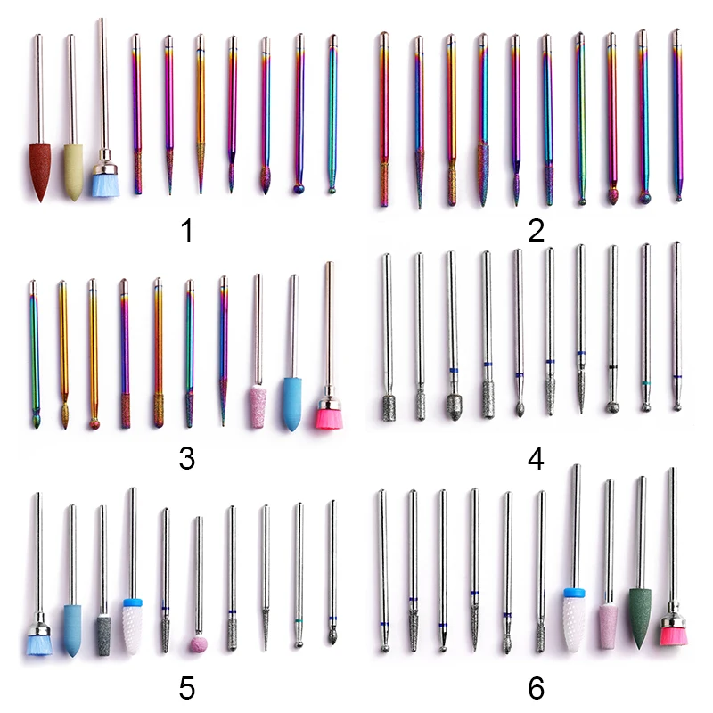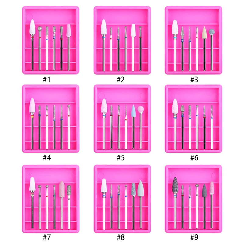 10/6pcs Ceramic Stainless Nail Drill Set Milling Cutter for Manicuring Electric Machine Nails Clean Bits Nail Art Accessories