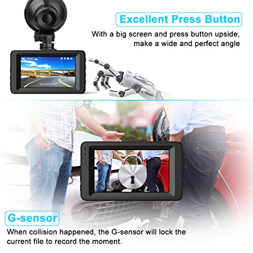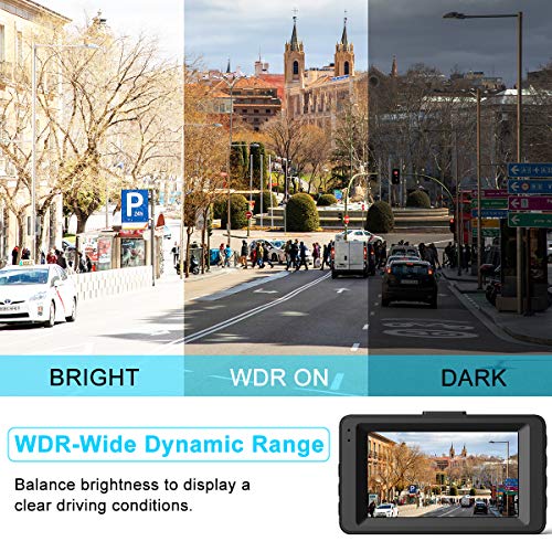 ★ 【Super Night Vision Dash Cams】 ★ Questa dash cam è dotata di sensore Sony avanzato e F1.8 ampia apertura, e video Full HD 1920 x 1080p a 30 fps combinati con tecnologia HDR consentono di catturare ogni condizione stradale e dettagli targa, fornendo immagini eccellenti anche in ambienti con scarsa illuminazione.