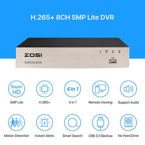 【H. 265/H.265+ 8CH 5MP Lite HD-TVI DVR】- Con la tecnologia avanzata H. 265, che può raddoppiare il rapporto di compressione dei dati, mantenere l'alta qualità video anche con un basso bit-rate, consente di massimizzare lo spazio di archiviazione e godere di una registrazione ultra-lunga.
