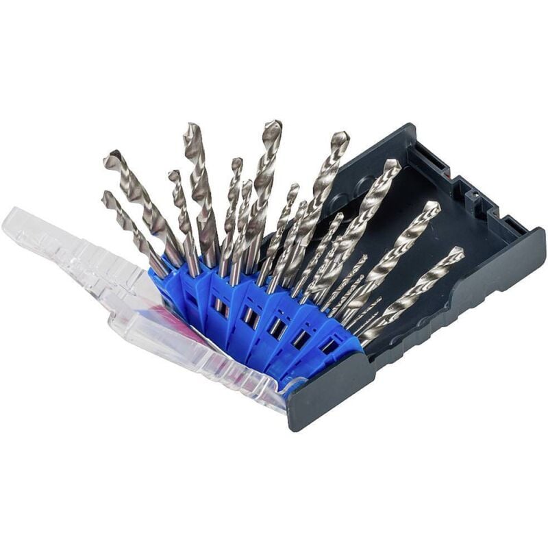 Dettagli tecnici Contenuto 19 pz. Diametro di foratura 1 mm, 1.5 mm, 2 mm, 2.5 mm, 3 mm, 3.5 mm, 4 mm, 4.5 mm, 5 mm, 5.5 mm, 6 mm, 6.5 mm, 7 mm, 7.5 mm, 8 mm, 8.5 mm, 9 mm, 9.5 mm, 10 mm Idoneità del materiale Metalli non ferrosi, Lamiera, Plastica, Acrilico, Piastre a camera cava Materiale punte HSS Peso 414 g Tipo prodotto Kit punte a spirale da metallo Kit punte per trapano in metallo kwb Powerbox - kit punte da trapano, 19 pezzi, acciaio HSS Kit punte elicoidali HSS, conforme a DIN 338, taglio a destra, tipo N, spirale arrotolata con smusso rettificato, senza vapore, finitura lucidata, angolo di punta 118°, cilindrico, Per es. Acciaio legato e non legato, ghisa grigia, metalli non ferrosi, materiali plastici duri. Testo tradotto automaticamente Punti di forza e dettagli Punta da trapano HSS nelle dimensioni del diametro: 1, 1,5, 2, 2,5, 3, 3,5, 4, 4,5, 5, 5,5, 6, 6,5, 7, 7,5, 8, 8,5, 9, 9,5, 10 mm, conforme a DIN 338,i trapani a spirale sono adatti per il foro in acciaio legato e