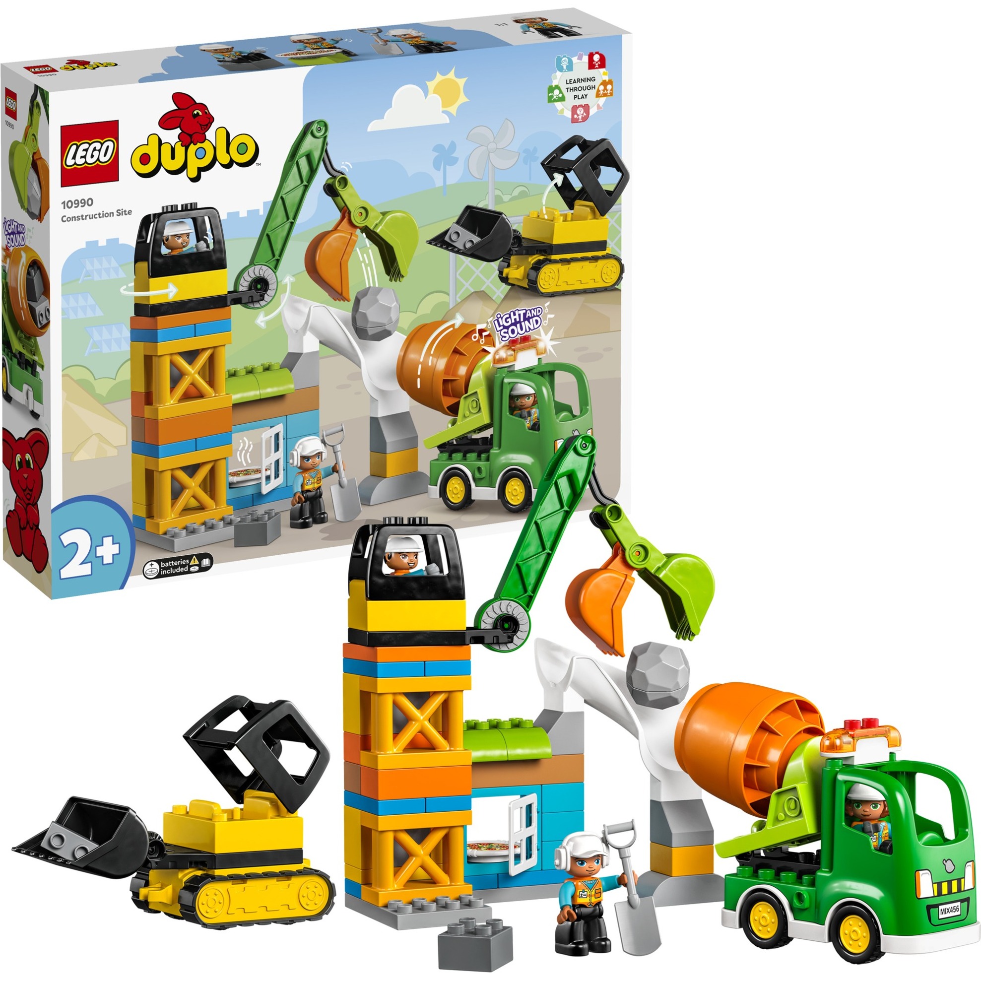 C''è molto da fare in cantiere - e con il set LEGO DUPLO cantiere con veicoli da costruzione, i bambini dall''età di due anni ottengono le loro prime intuizioni sulla vita quotidiana del cantiere. Con gru, bulldozer e betoniera, sono inclusi tre importanti giocattoli da cantiere. Inoltre, ci sono tre operai edili e grandi funzioni. Il bulldozer spinge i massi di lato, la gru li solleva verso l''alto e poi li lascia scivolare nella betoniera. E dopo il lavoro c''è una deliziosa pizza per i lavoratori.