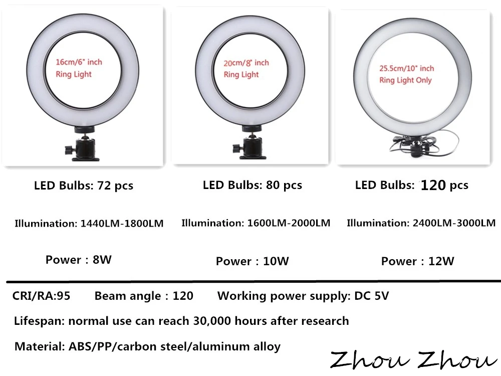 10inch 26cm Dimmable LED Studio Camera selfie Ring Light Phone Video Light Lamp With Tripod for tiktok ringlight aro de luz