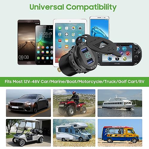 10L0L Carrello da Golf DC 9V-48V Carica Rapida 3.1 Caricatore Doppio USB, Porte USB 2 in 1 Misuratore di Tensione LED Universale per Club Car EZGO Yamaha