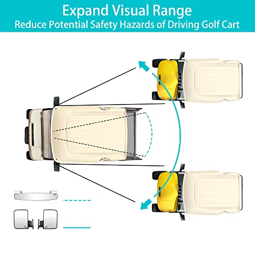 Più sicurezza e alta qualità: i nostri specchietti laterali per carrello da golf e lo specchietto retrovisore per carrello da golf forniscono immagini non distorte e ultra nitide, contribuendo a ridurre i punti ciechi e garantire la sicurezza di guida, la struttura in plastica ad alto impatto dell'alloggiamento resiste ai danni per gli anni a venire.