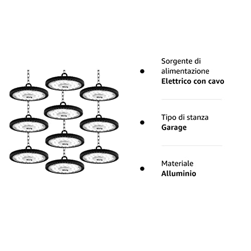 10packs-Jefedana 100W UFO Faretto LED Bianco Freddo 6500K LED UFO 10000LM Lampada Interni Industriale IP65 Impermeabile Proiettore Faretto LED per Industriale Officine