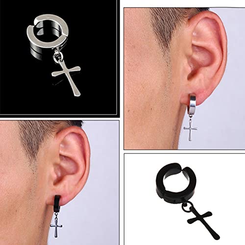 10Paia Magnetici Orecchino Finto in Acciaio Inossidabile Cerchio Orecchino CZ Calamita Cerchio Orecchino Non Piercing Croce Orecchino Uomo Nero Set