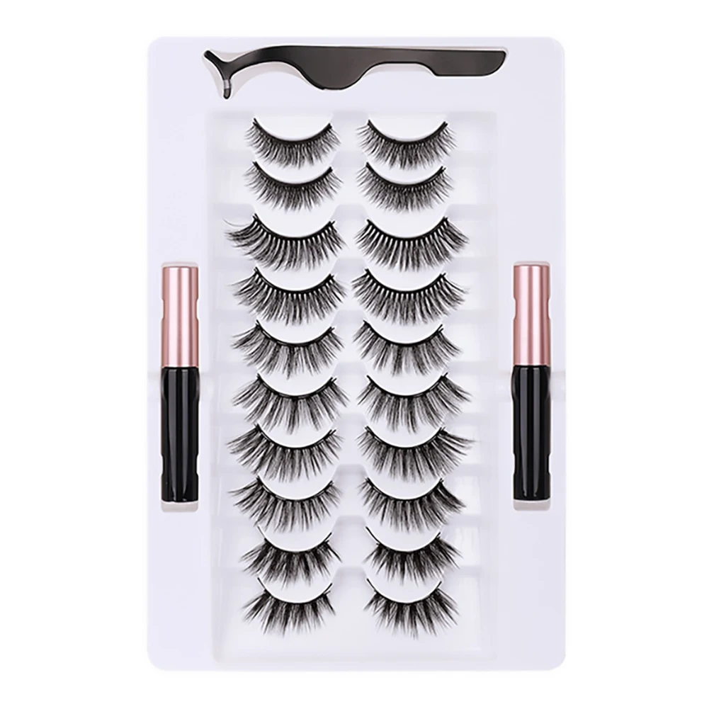 10pairs Makeup Magnetic Lashes Natural 3D Mink False Eyelashes Magnet Extension Dounle Liquid Eyeliner &Tweezer Set Tool