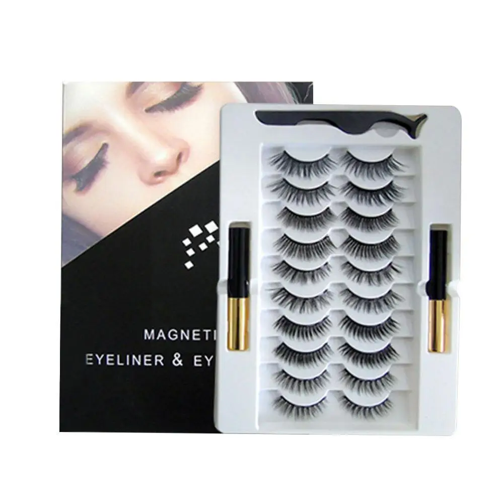 10Pairs/Set Makeup Magnetic Lashes Natural Mink False Eyelashes Dounle Magnet Eyeliner Waterproof Long Extension Lasting Li A3Y3