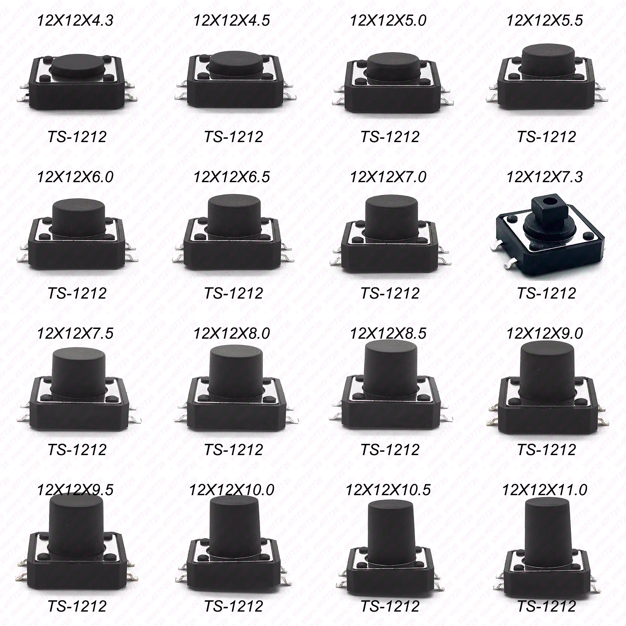10PCS 12X12 H=4.3/4.5/5/5.5/6/7/8~17MM 4PIN SMT Momentary Tactile Tact switch Push Button Switch BLACK