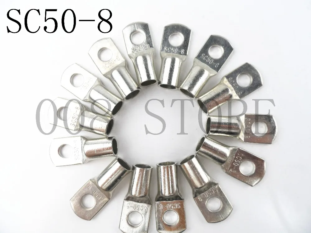 10PCS 20PCS 30pcs/Lot SC 50-8 50mm2 8mm Bolt Hole Tinned Copper Cable lugs Battery Terminals Brand New
