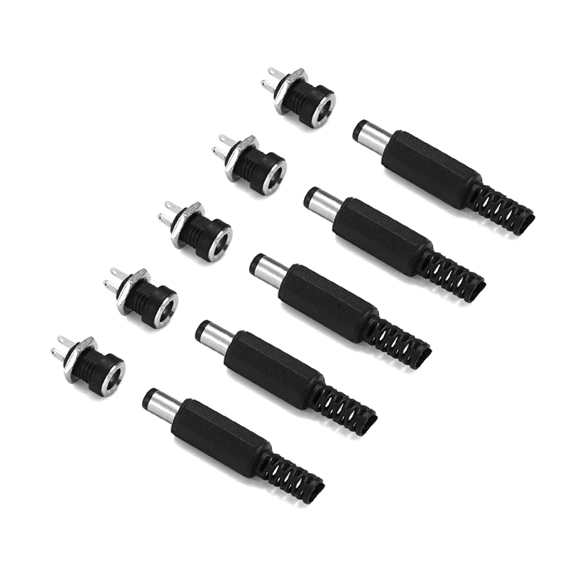 10PCS (5Pairs) 12V 3A 5.5 x 2.1mm Plastic Male Plugs DC Power Socket Female Jack Screw Nut Panel Mount Connector 5.5*2.1MM