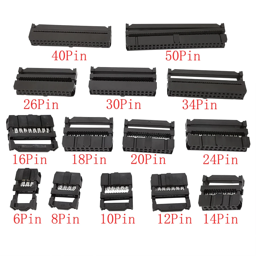 10Pcs FC 6-50Pin Pitch 2.54mm IDC Connector FC-6/8/10/12/14/16/18/20/30/40/50Pin Dual Row IDC Socket Plug 1.27mm Wire Connector