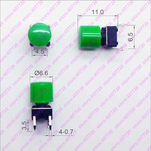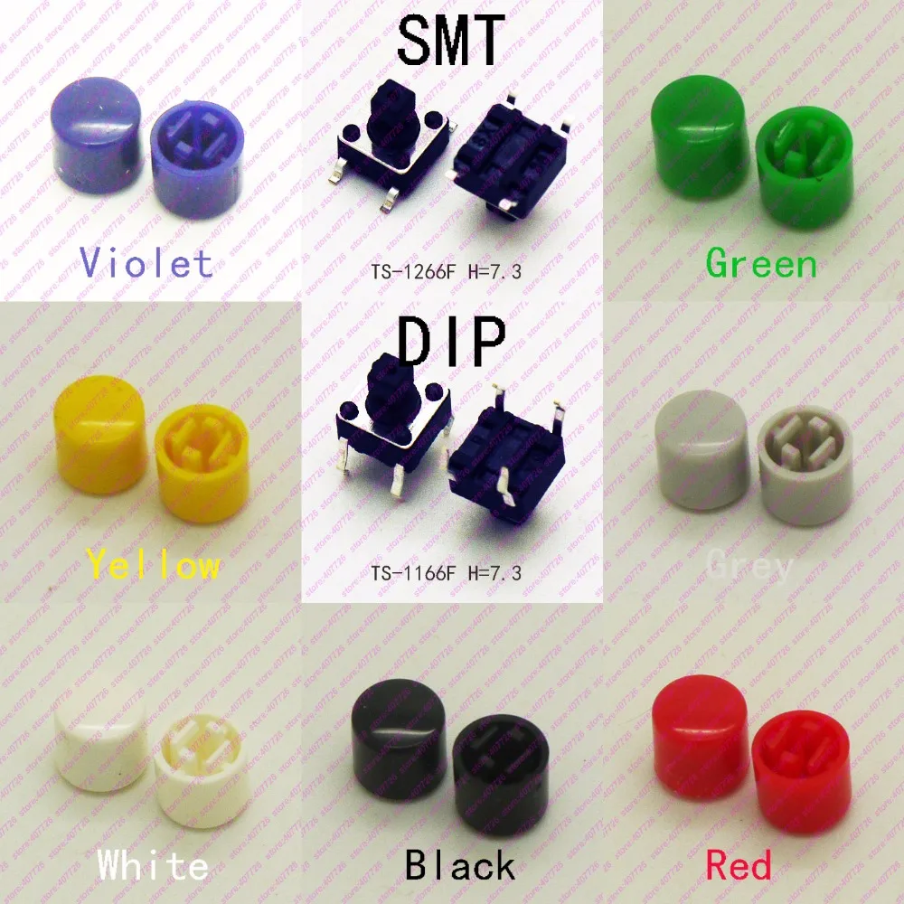 10PCS 6X6X7.3MM(H=11MM With Cap) 4PIN DIP& SMT Momentary Tact Button Top Square Head Tactical Keys Switch Mini Push Button