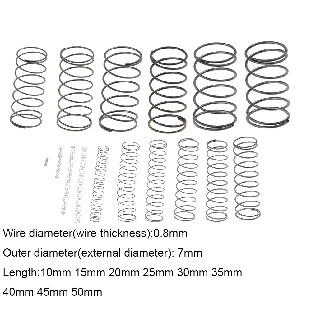 10PCS 0.8*7*10-50mm Spring Steel Small Compression Release Mechanical Return Spring Pressure Spring OD 7mm 0.8x7x10-50mm