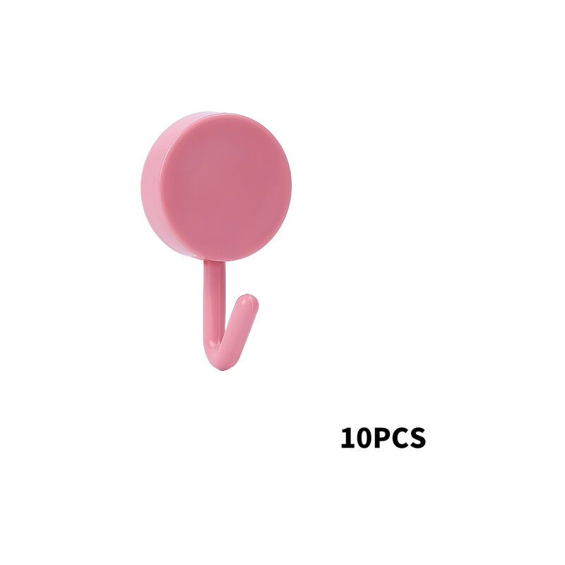 Specification:Material: PlasticSize: 3*5cmColor: Light Pink, Light Blue, Dark Blue, White, Black, Purple, YellowQuantity: 10pcs/packDescription:Upgraded magic non-marking adhesive, thickened adhesive layer, strong adhesion, durable and stableHook 360°, rotating design, kitchen storage, bathroom storageBrush storage, easy installation, quick and easy, nail-free and drill-free