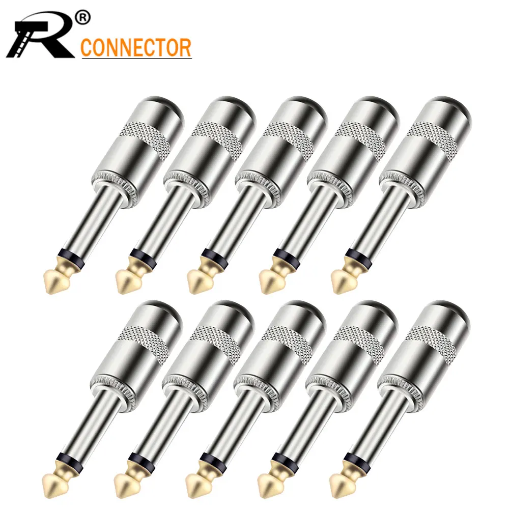 10pcs Zinc Alloy Case 1/4 inch Plug Jack 6.35mm Mono Male Connector Gold Plated Guitar Effects Pedal Microphone Connector