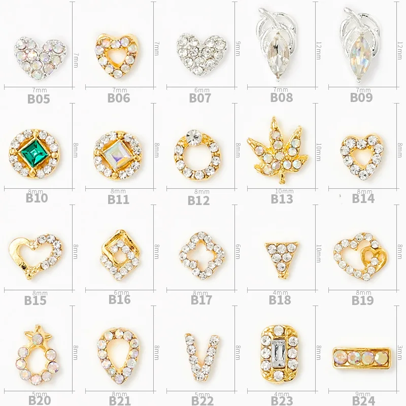 10pcs New Hot Alloy Metal Stick Drill Maple Leaf Love Hollow Series Alloy Rhinestone 3D Fashion Charm DIY Nail Art