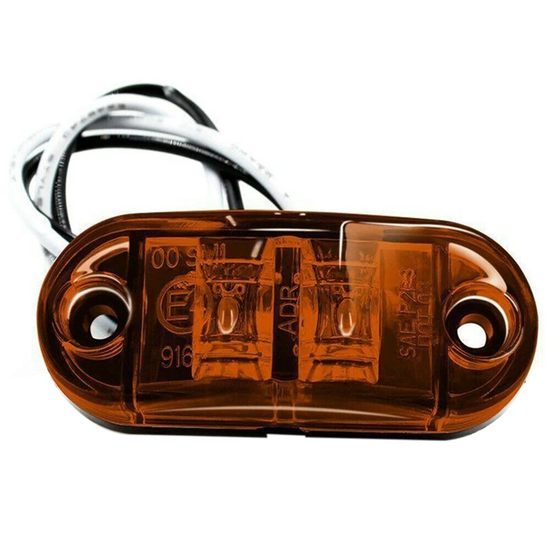 10Pcs Amber 2 Led Light Oval Clearance Trailer Car Truck Side Marker Tail Lamp