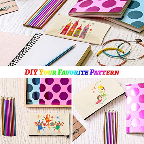 ✎DESIGN DI APERTURA: Borse fai-da-te in tela bianca L'apertura migliorata è più grande del vecchio design per rendere più facile estrarre la cancelleria dall'astuccio, la cerniera migliorata ha le stesse dimensioni del cursore per cerniera.